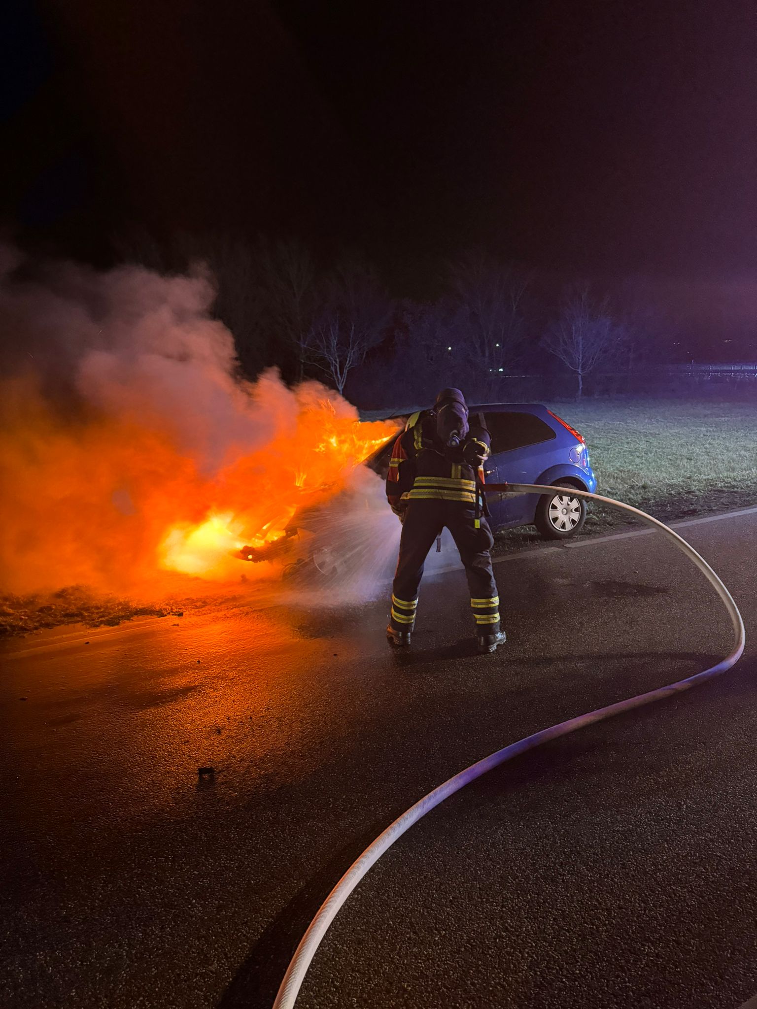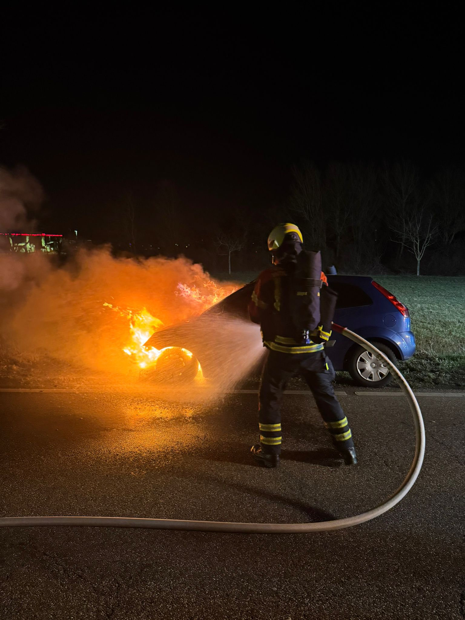 leiteten die Brandbekämpfung und Abschirmung mittels einer Riegelstellung ein. Dies zeigte rasch Wirkung. Nachdem “Feuer schwarz” gemeldet werden konnte, wurde der PKW aus dem Bereich des Brandorts herausgezogen. Da es sich entgegen der Alarmierung nur um eine Einsatzstelle handelte, kam die Mannschaft des Löschgruppenfahrzeugs aus Baiertal nicht zum Einsatz und konnte nach kurzer Zeit wieder aus dem Einsatz entlassen werden. Gezielte Nachlöscharbeiten und eine Kontrolle mittels Wärmebildkamera bildeten den Abschluss der Maßnahmen. Insgesamt beschäftigte der Einsatz die ehrenamtlichen Helfer rund zwei Stunden, bevor sie wieder nach Hause in den Kreis ihrer Familien zurückkehren konnten.