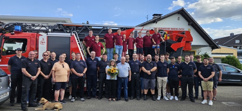 Im Juli stand der Ehrentag von Gerolf Sauer an: Zahlreiche Angehörige der Abteilungsfeuerwehr überraschten Gerolf mit einem Martinshorn-Ständchen und überbrachten Glückwünsche zu seinem 70. Geburtstag und ein Präsent, angeführt von Kommandant Philipp Büchel und Abteilungskommandant Marco Friz.